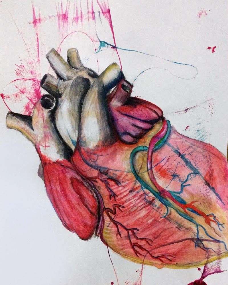 The hearts act as a sentimental reminder of those I’ve loved and lost but also provide me comfort as the act of drawing or painting them feels like a meditative act.