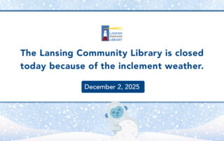 2 12, 2025 Lansing Community Library is closed today Meg Price2025-12-02T08:42:08-05:00December 2nd, 2025|Special Announcement| The Lansing Community Library will be closed today due to [...] Read More