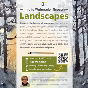 LCL Intro to Watercolor Through Landscapes with Lee O’Connell Join Lee O’Connell for an introduction to watercolors through Landscapes! ... 11 Apr 10:00 am - 1:00 pm Lansing Community Library27 Auburn Road, Lansing, NY
