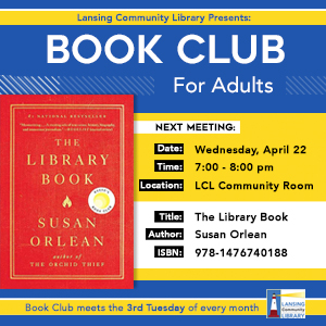 LCL Book Club for Adults – April Meeting LCL Book Club for Adults – April Meeting For our April ... 22 Apr 7:00 pm - 8:00 pm Lansing Community Library27 Auburn Road, Lansing, NY