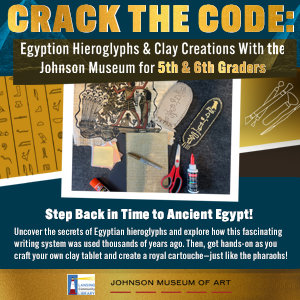 LCL Presents Crack the Code: Egyptian Hieroglyphs & Clay Creations for 5th & 6th Graders LCL Presents Crack the Code: Egyptian Hieroglyphs & Clay Creations ... 21 Oct 3:00 pm - 4:30 pm Lansing Community Library27 Auburn Road, Lansing, NY